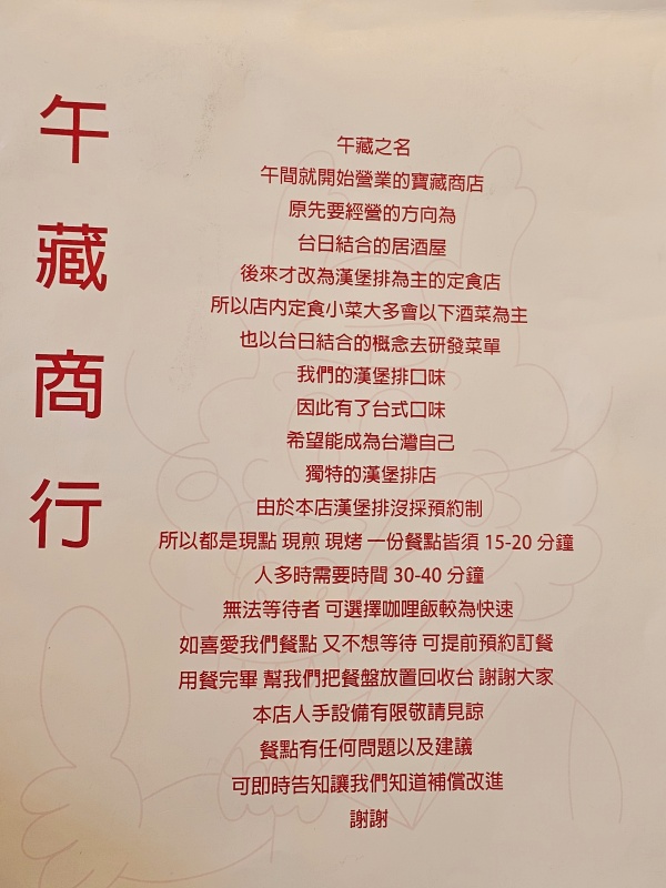 「捷運:三重國小站」午藏商行Wu cang Shang hang 漢堡排專賣~1150131結束營業