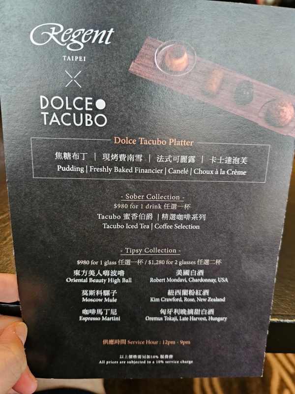 上庭酒廊的Dolce Tacubo午茶每組 980 元