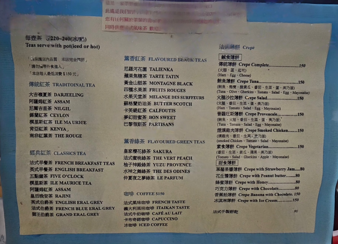 「捷運:中正紀念堂站」Salon de Thé 歐品坊 茶、法式薄餅(甜+鹹)、咖啡
