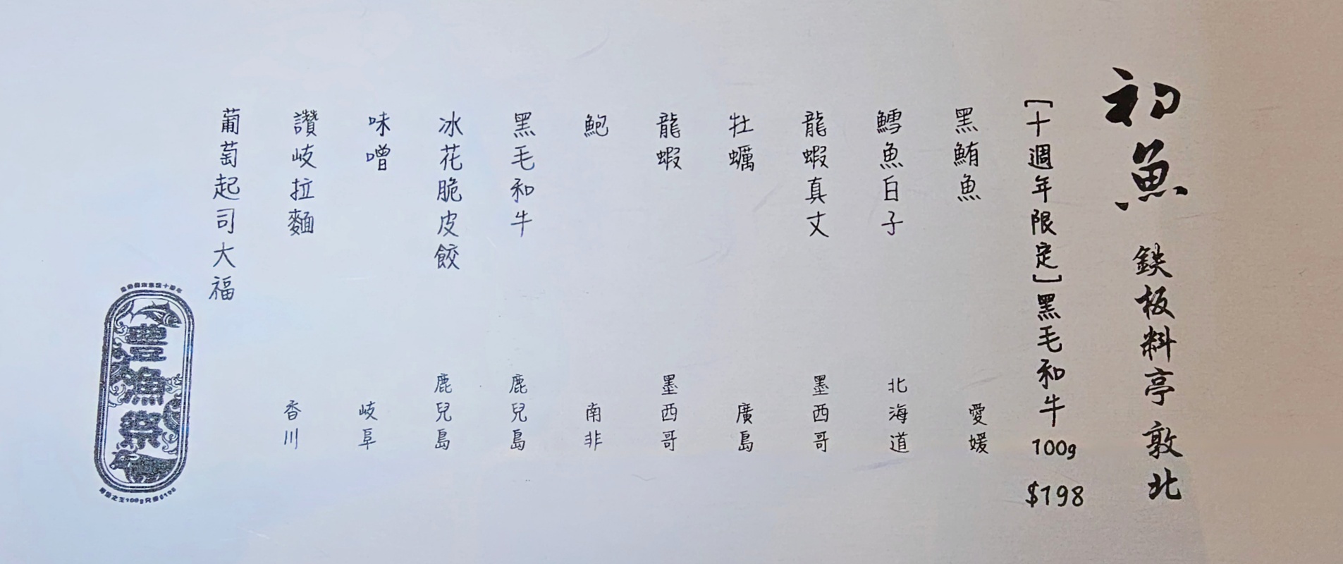 「捷運:台電大樓站」初魚料亭 鐵板燒-泰順