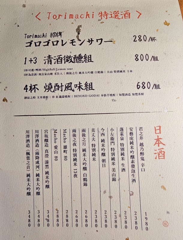 - 3+1 清酒微醺組 (NT$ 800):
