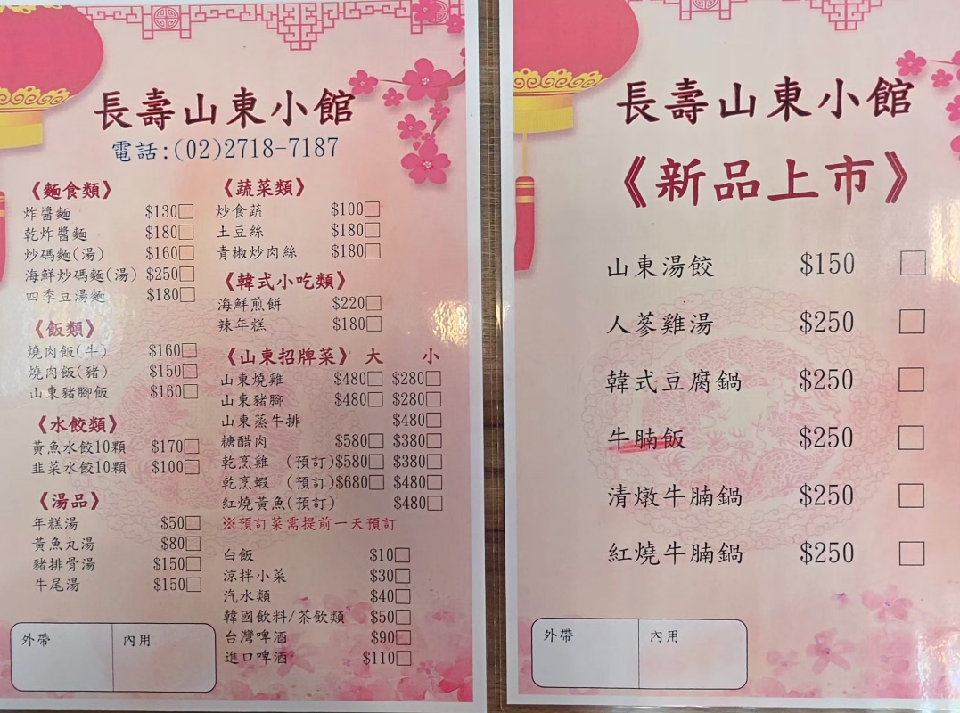 2026.03.29 「林口」長壽山東小館(新品牌7年)|延續42年老字號長壽韓國料理 北部地區-直轄市-新北市 Tweet https://www.facebook.com/MuJinHanGuoYuChuMeiShan?mibextid=wwXIfr&rdid=xGvngKXscJfchGu8&share_url=https%3A%2F%2Fwww.facebook.com%2Fshare%2F19aKSz4xGf%2F%3Fmibextid%3DwwXIfr# 地址: 244237新北市林口區中山路548號 電話號碼: 02 2718 7187 營業時間: 12:00–14:00, 17:30–21:00 豬排骨湯 黃魚水餃 山東燒雞 海鮮煎餅 相關文章「捷運:象山站」Zaaptaipei泰國菜~九訪「高雄」雋 GEN x 主廚李雲浩x米其林一星 二訪「富基漁港」a18.a19春來活海鮮姊妹餐廳「捷運:台北101/世貿」川雅| Chuan Ya x 米其林一星 ~主廚:王國政 2026春季新菜~二訪「林口」土爸爸行動廚房2.0~搬家新開幕 X 碳烤雞肉捲餅 X 碳烤雞翅「台南」予島 YuDao 第二季春季新菜x 主廚楊柏偉Nick「捷運:中山國中站」慢慢弄Lab Man Mano x 起司日和旗艦店 早午餐咖啡廳「捷運:台北小巨蛋站」T+T 21訪 2026 春季菜 米其林一星「捷運:信義安和站」巴黎米其林一星餐廳 Sola Paris 主廚 Kosuke Nabeta x 米其林一星de nuit 主廚Kei Koo 四手 [2026年3月22日至23日]
