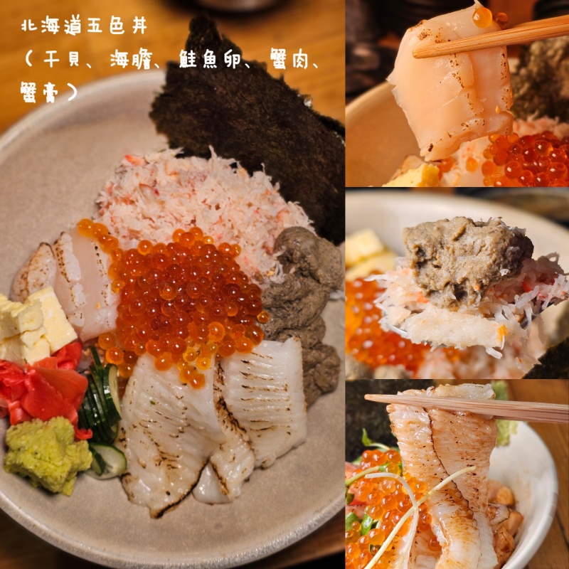 北海道五色丼:干貝、海膽、鮭魚卵、 蟹肉、蟹膏